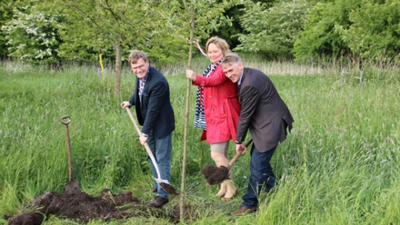 Zum 100. Geburtstag der Gemeinde Haßmoor im Amt Eiderkanal haben die CDU-Abgeordneten von Bund, Land und Kreis der Gemeinde einen Apfelbaum gespendet.